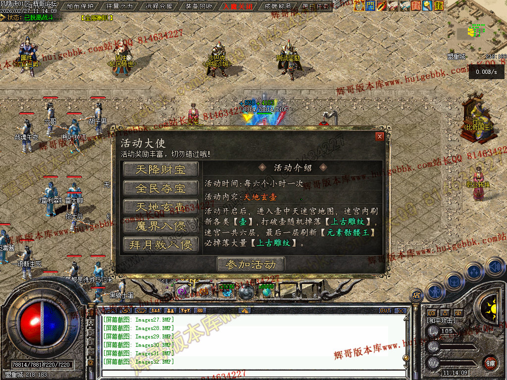 5:拜月教入侵(必参加)根据系统提示参加即可,产出邪神套,拜月专属,九泉神器!!!