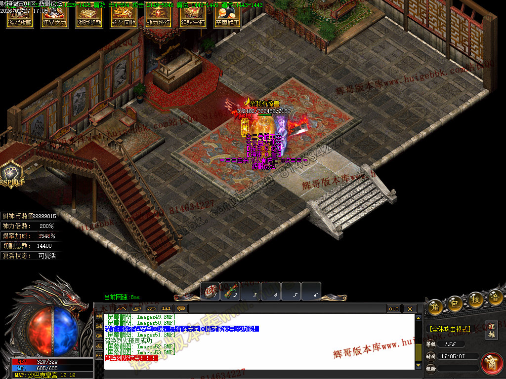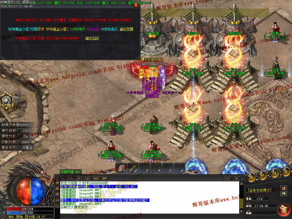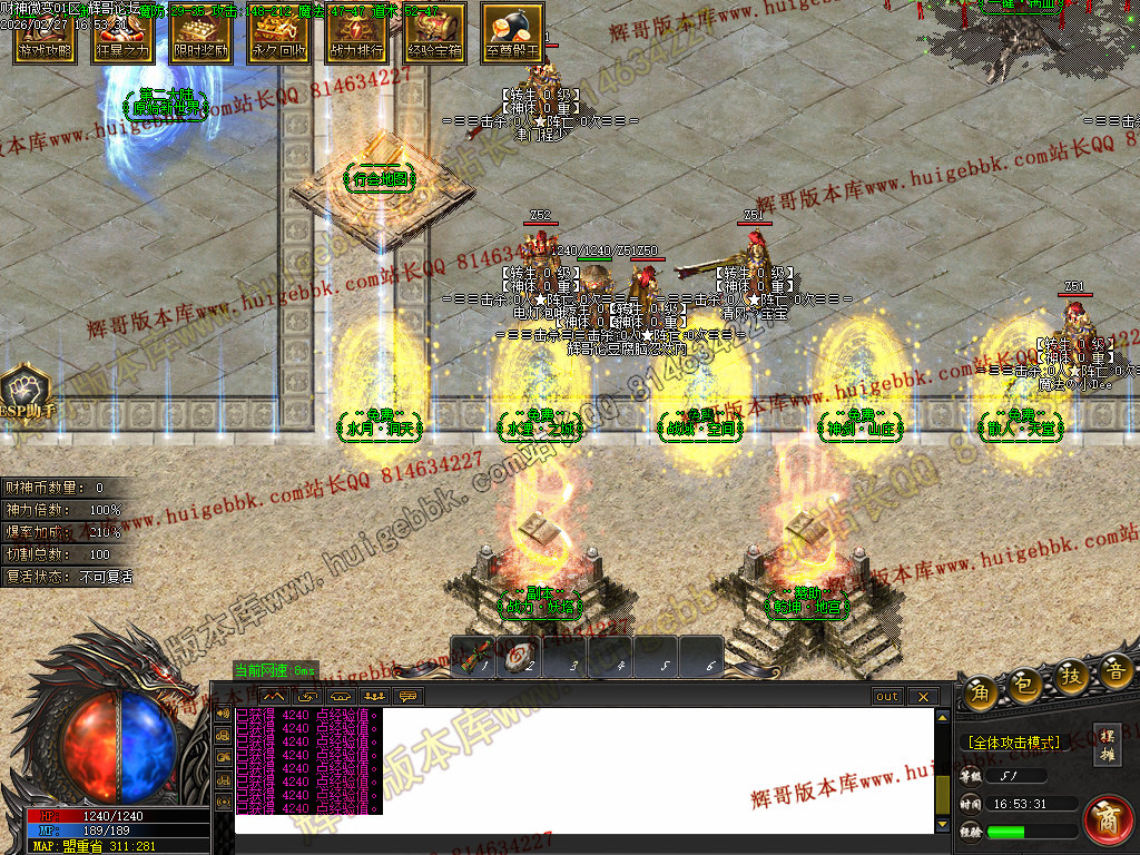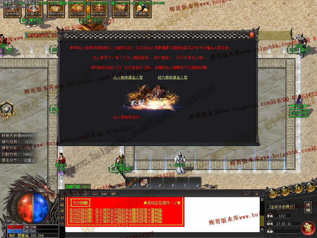 <大陆可进入炎阳神殿.修罗禁地.森林神坛.财神发财.财神魔盒><→终极靠打>