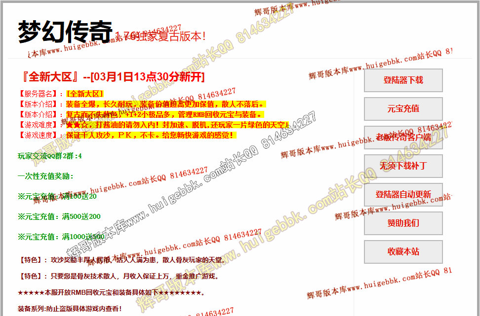 如果发现影响开区的大问题,可联系站长进行免费修复,细节问题自己处理不负责细节问题,
