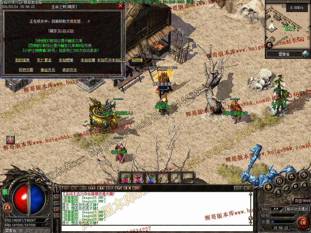 杀猫逐鹿出新村 斩妖除魔入盟重 近观绿涛汇碧海 远眺青山有苍松