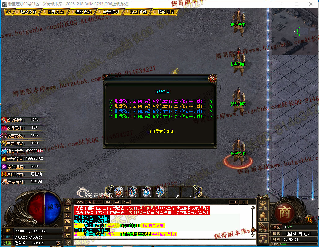 如果发现影响开区的大问题,可联系站长进行免费修复,细节问题自己处理不负责细节问题,