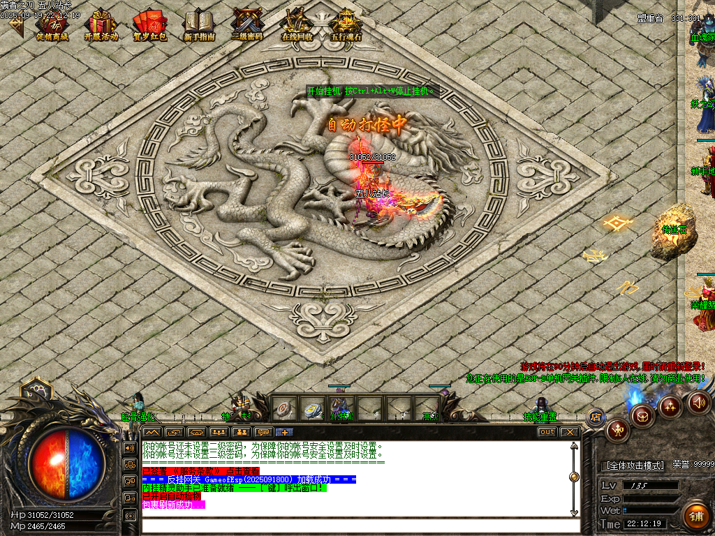 【攻沙设置】:新区开放第二天合区,第三天晚上20点整准时攻沙,攻沙奖励基础元宝20万+全服进地图费用的20%作为攻沙奖励!