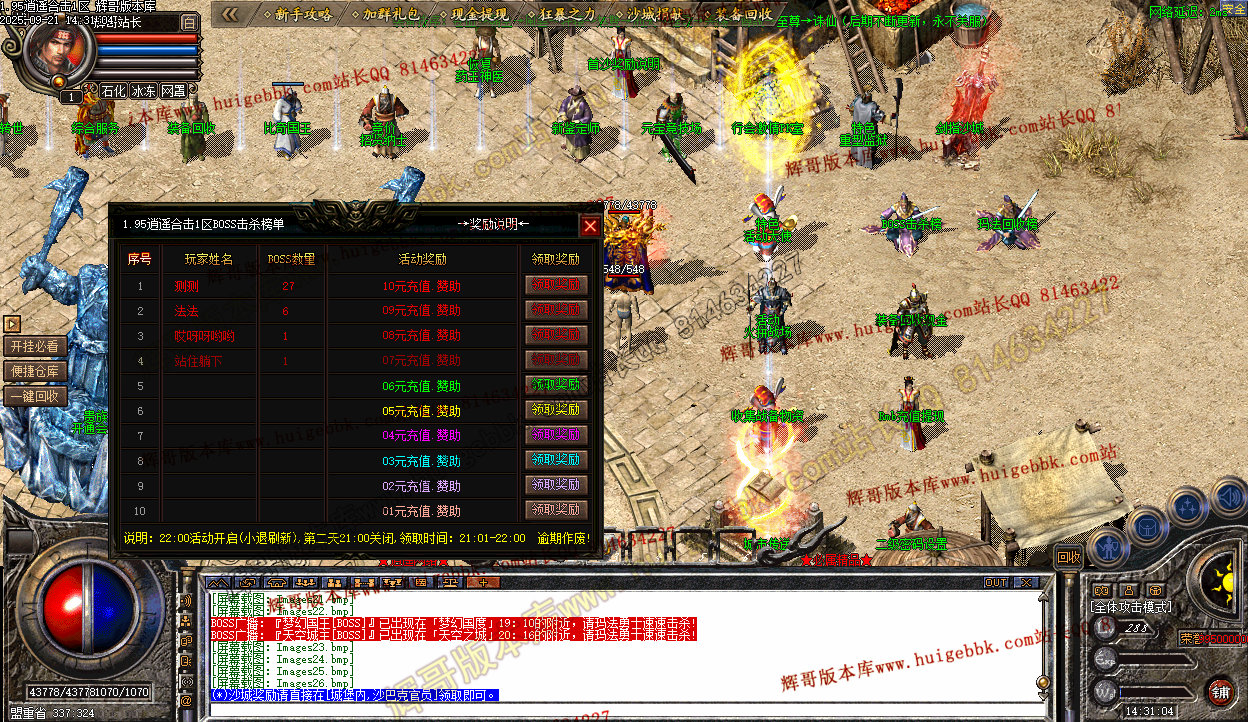(*)沙城奖励请直接在[城堡内,沙巴克官员]领取即可。