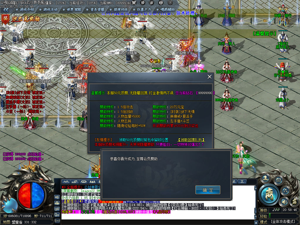 【建议】:强烈建议打50顶赞必买!!!快速起步,本服材料以及元宝需求量非常大,领取奖励后直接杀入各大地图抢杀首杀首爆。