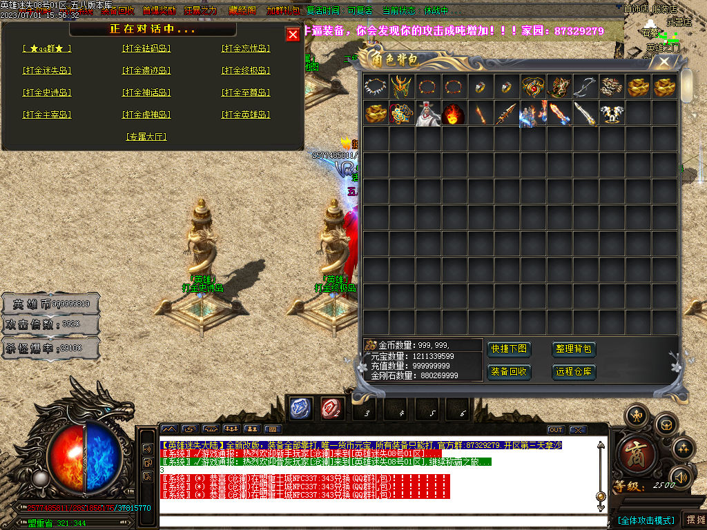 合区介绍:本服第一天下午合区.攻沙K超级激情.还有红包可以拿,是兄弟就来砍我!(绝对良心绝对激情)