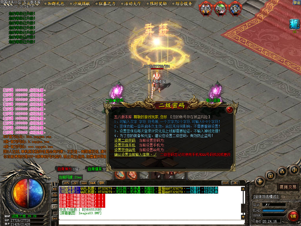 04、打怪想挂机解放双手的可以充值20米领取充值回馈!赠送神技十步一杀!