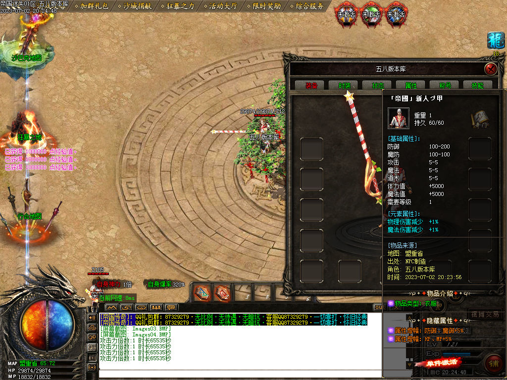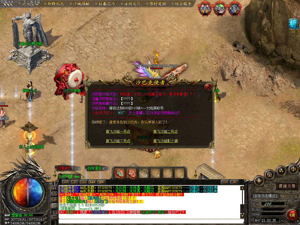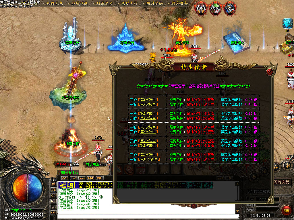 02、开启沙城捐献赠送刀刀切割1%怪物血量,爆率+50%!