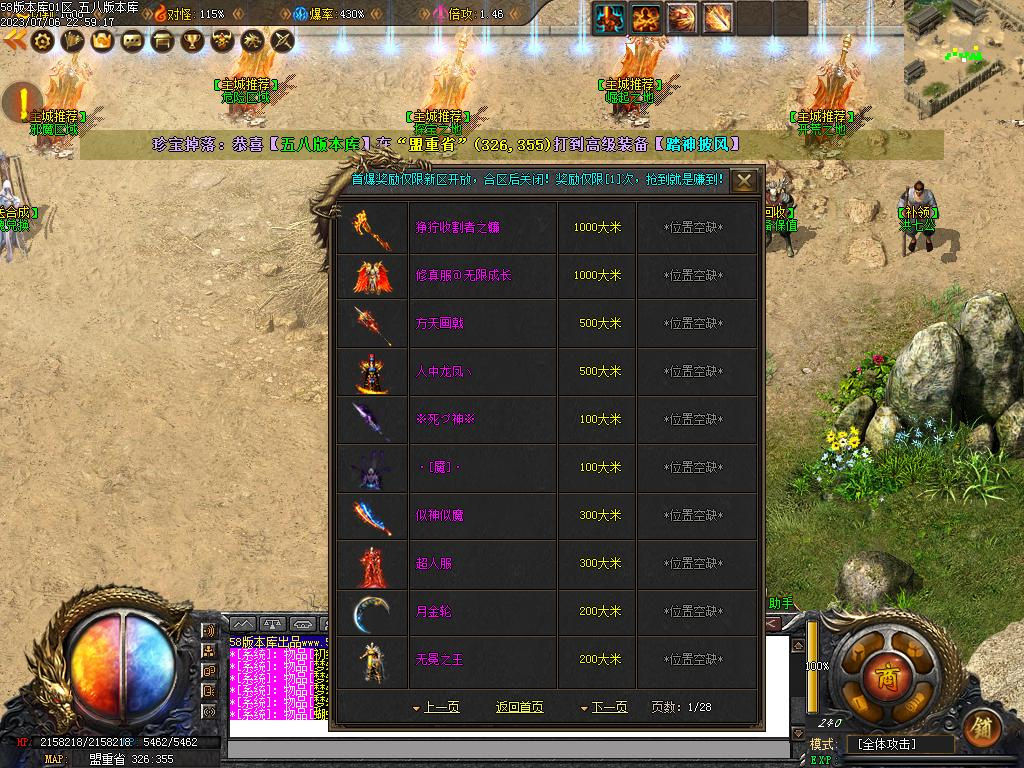 满号共计:171米【大米充值:155米、元宝充值:116米】