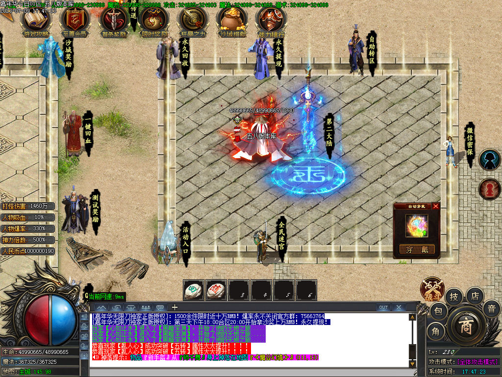 直接进入会员或捐献地图发育,抢限时、首杀、打升级、转生材料.可快速满足进入二大陆条件