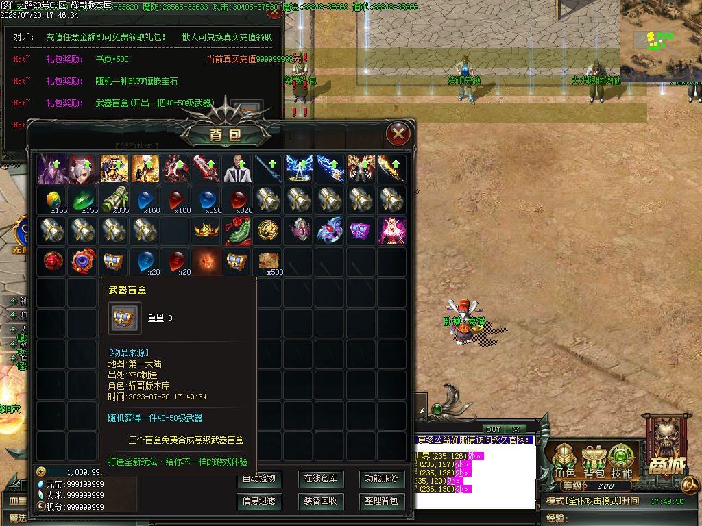 5:散人攻略: 新增盲盒系统,打怪随机掉落。盲盒可开高级宝石或者高级剑甲。惊喜不断