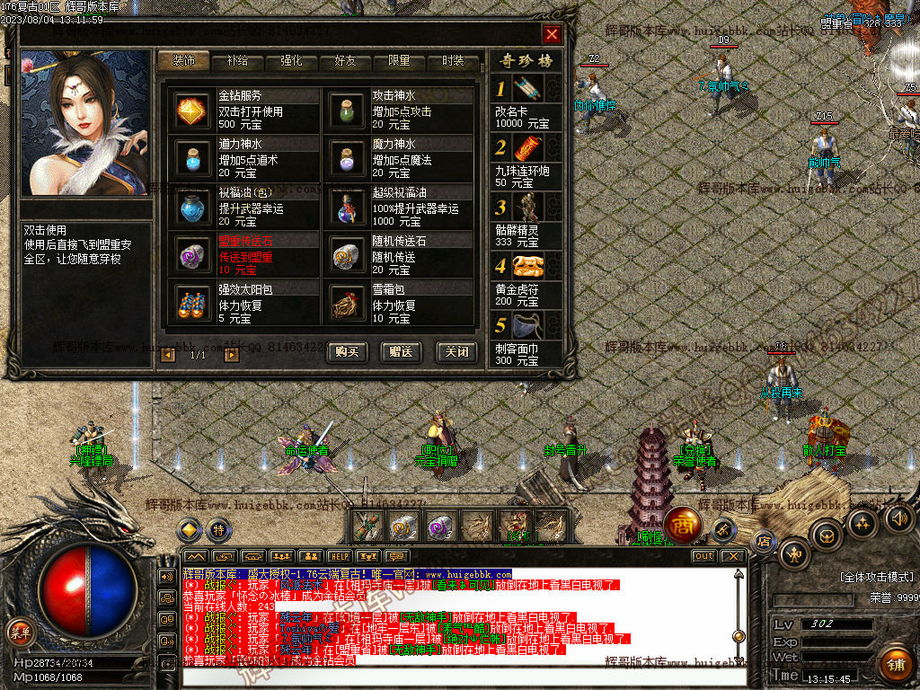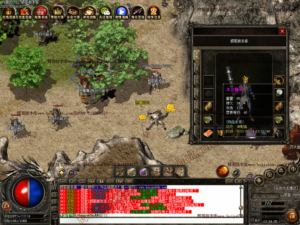 4.充值10米即可获得:祖玛套装,金钻会员,黄金虎符,三倍经验勋章,金条,号角等.