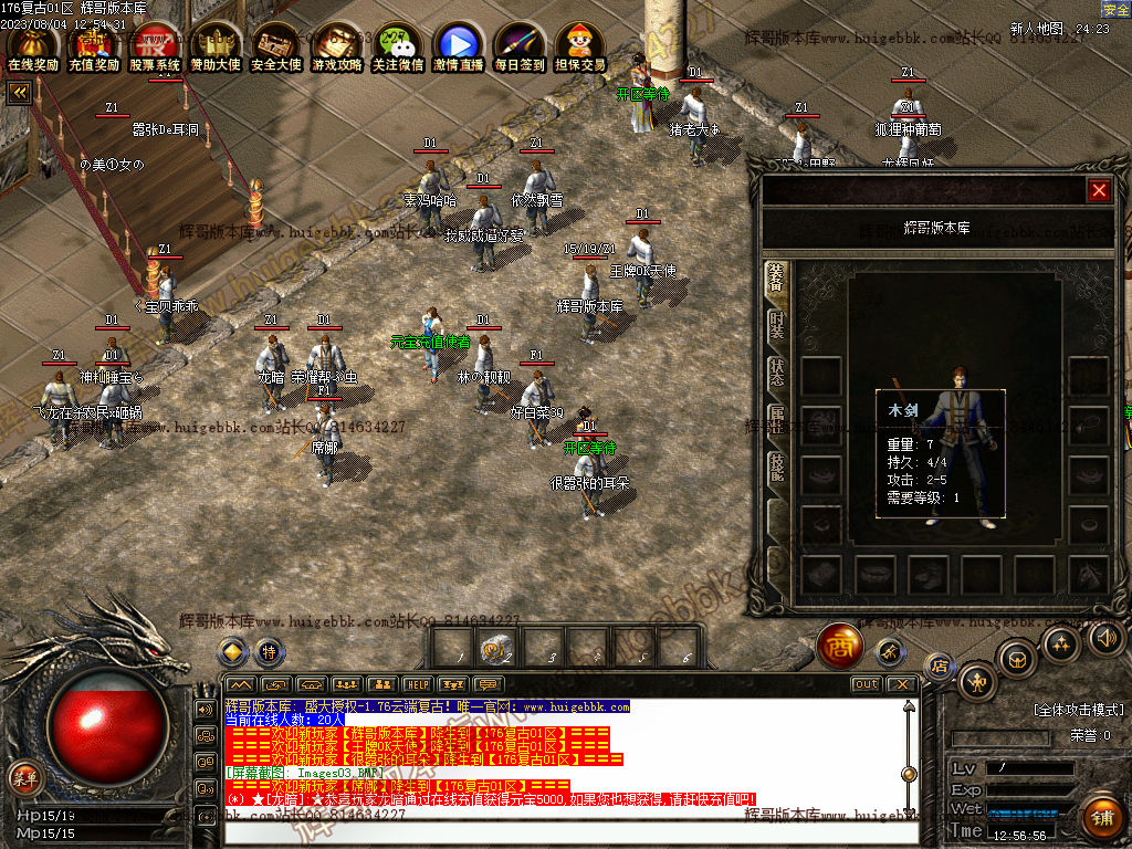 玩法介绍: 每天22:30开启,23:00关门.关门之前30分钟内,每秒涨2000点经验.23:00后将其他行会成员全部清理出地图,行会老大即可领奖.