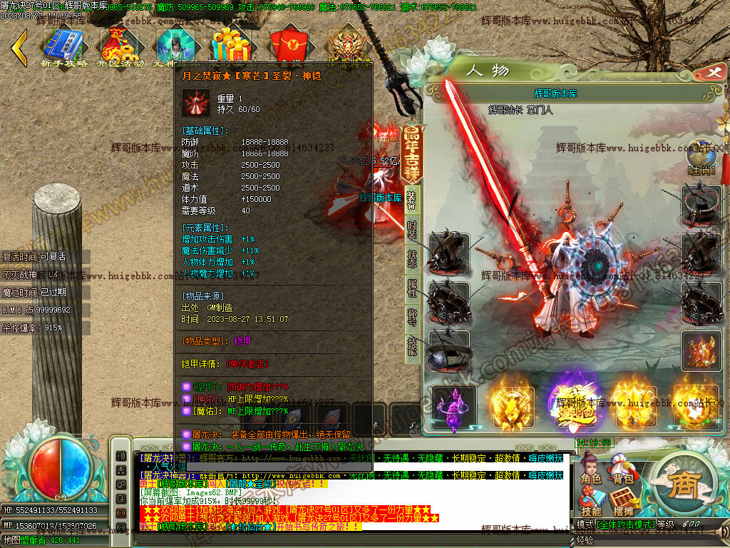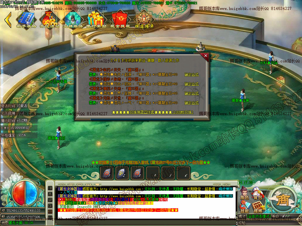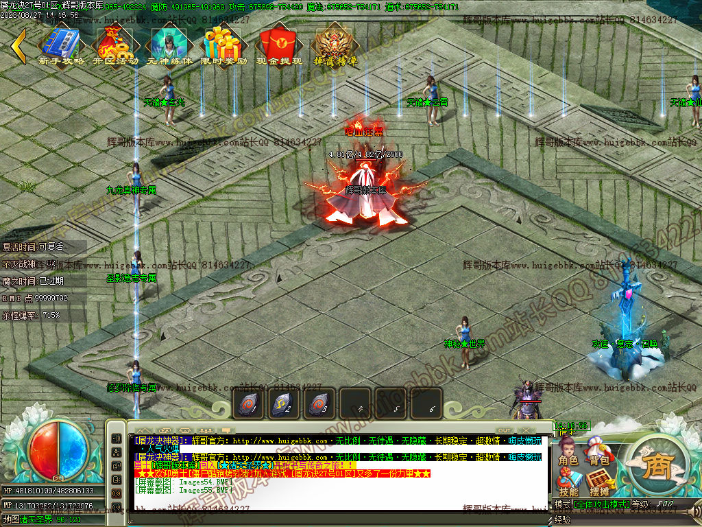 充值800米元宝 + 40米点 = 640米 13级切割号 (@召唤 随机出49剑甲随机)