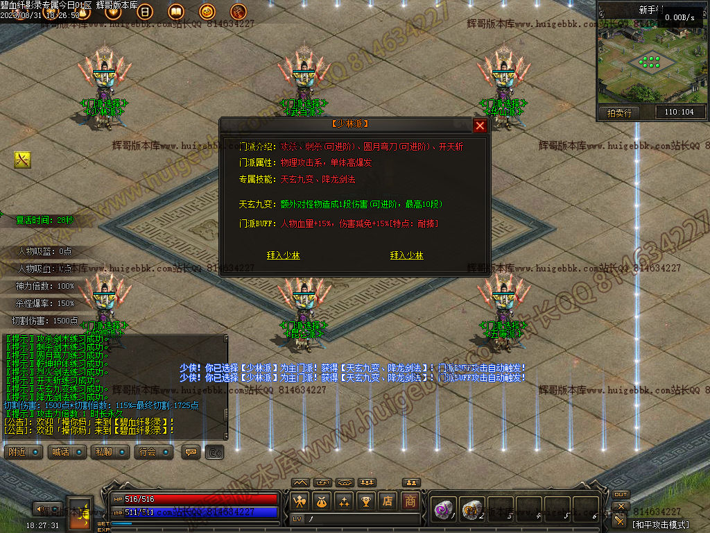 门派介绍:九重攻杀、烈火(可进阶)、开天斩、逐日剑法