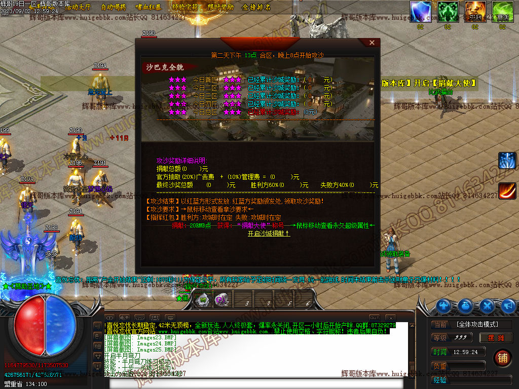 行会介绍:红蓝方模式收人,合区后开启,行会相差人数3人,攻沙奖励,颁发奖励自己领取。100%发放奖励,一人攻城正常颁发奖励