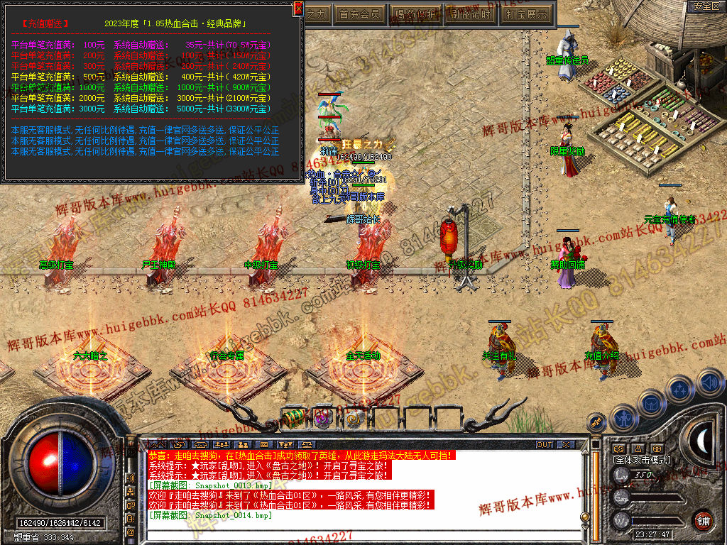 充值介绍:【充值赠送】 元宝1:3000 2023年度『1.85热血合击·全网独家』