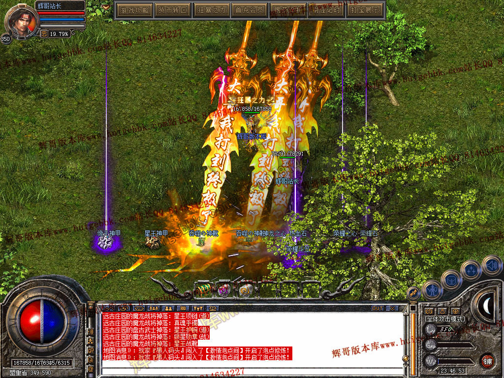 米老板吃肉攻略:直接搞满赞 满级之后 庄园(神龙炉)搞双套热血 镇妖塔 帝王陵 名人堂 八界魔神地 各大地图BOSS无限撸!