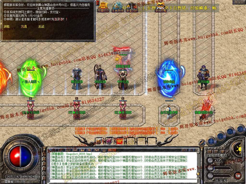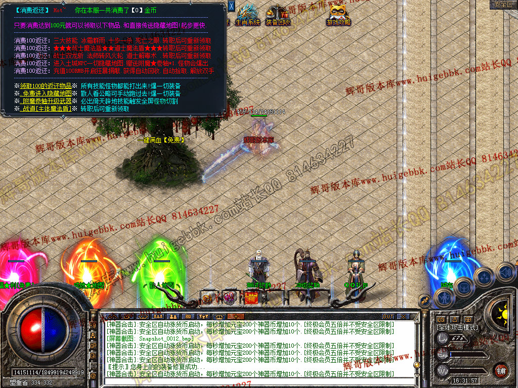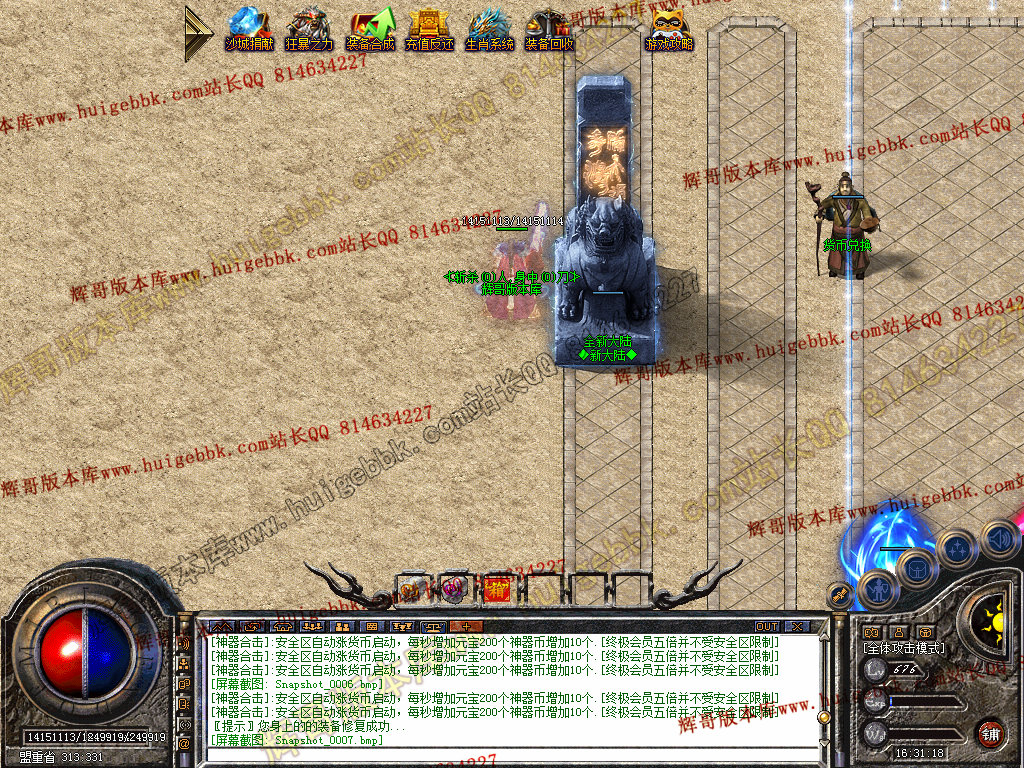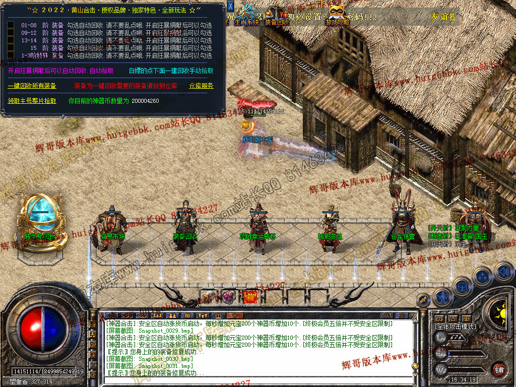 本服有多套装备回收.所有终极装备只能打怪爆出来.无合成.包括终极四格武器衣服