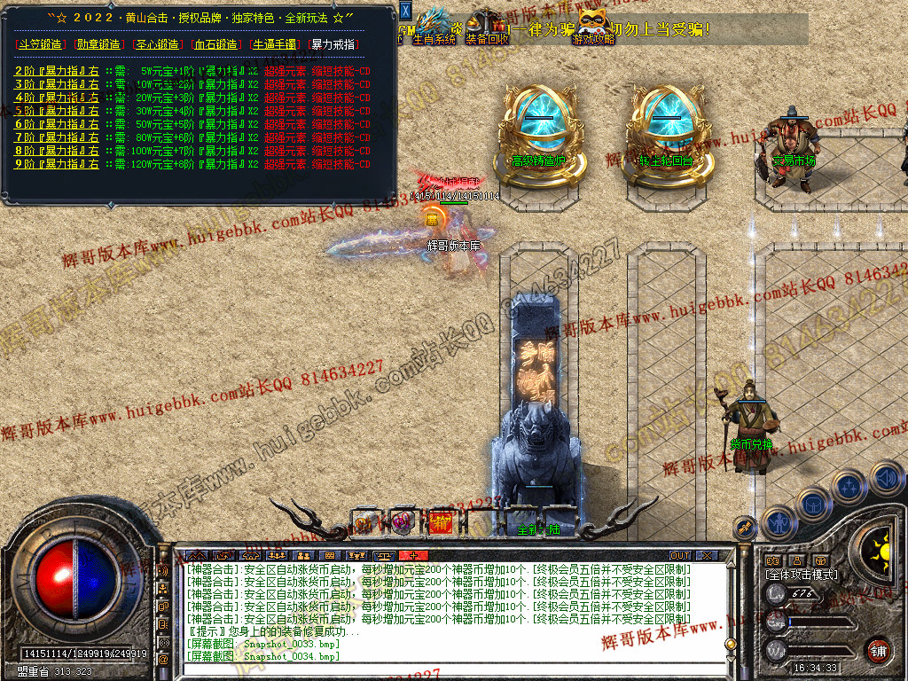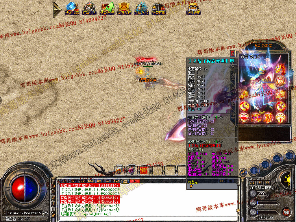 怪物爆率:12.8万血开始出18级以下的装备.100万血开始出一切装老区爆率不关闭.永久回收!(老区超级激情)