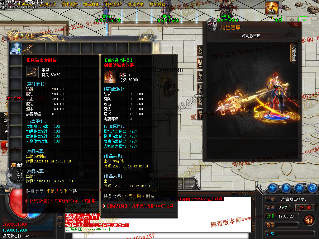 【时装】 (备注)越高级时装:米素越高,打怪几率固定怪物掉血越高!