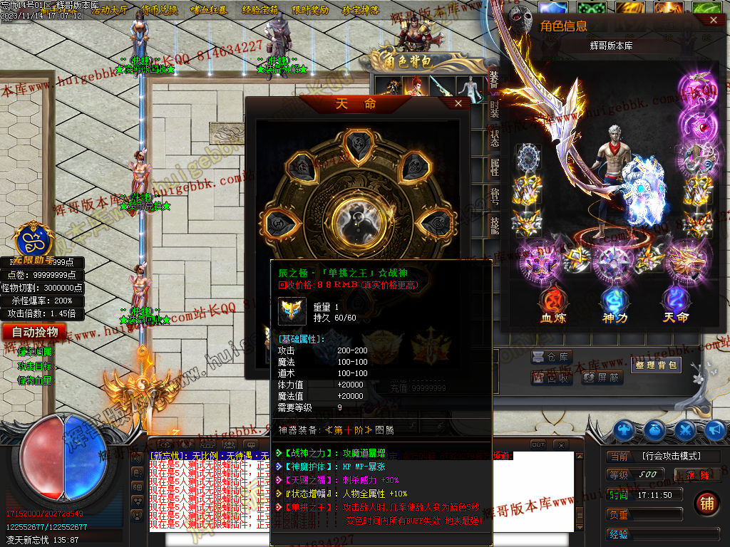 天命上古X2+200W元宝+50000点券+10游龙乾坤珠 =天命化神X1 (有专属地图)