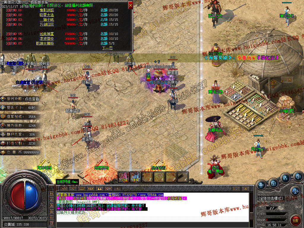 至于元宝,经玩家测试【二大路一天打5000万】【 三大陆一天打一个亿】 轻轻松松,中后期元宝好打请勿充值,土豪随意
