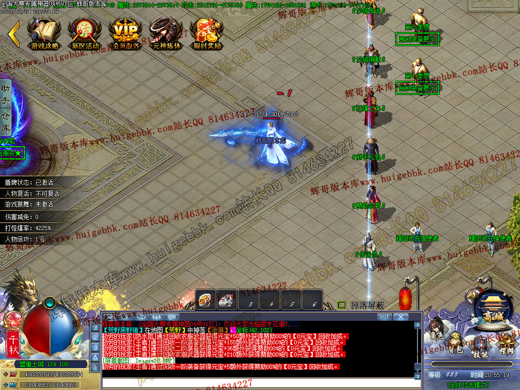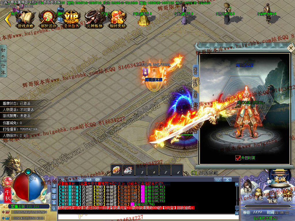6、开区60分钟后必爆高级专属剑甲的活动,玩家必抢,直接起飞;