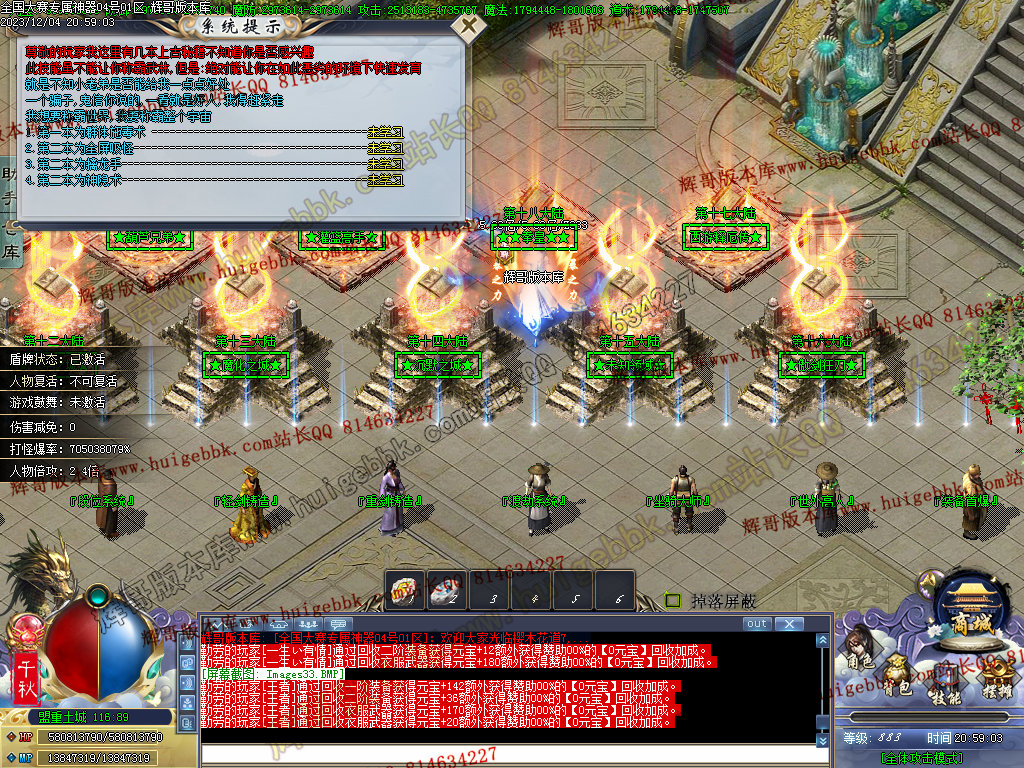 5、新增了一个献祭地图(在村庄里),里面刷新大量的终极BOSS(只刷BOSS),很高几率出终极衣服武器;而且地图里面有隐藏2倍爆率哦;