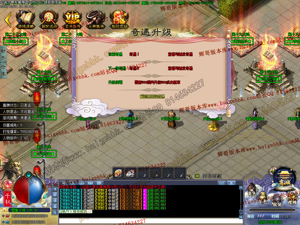 3、新增了三国战纪篇、圣斗士篇。具体在14大陆进入查看。(N多装备、N多怪物,N多专属)。