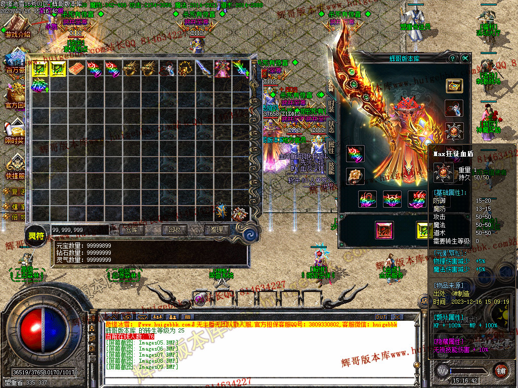 [打掉回城石]:佩戴成品鸿蒙剑甲,打架即可触发清空对方背包所有回城石.