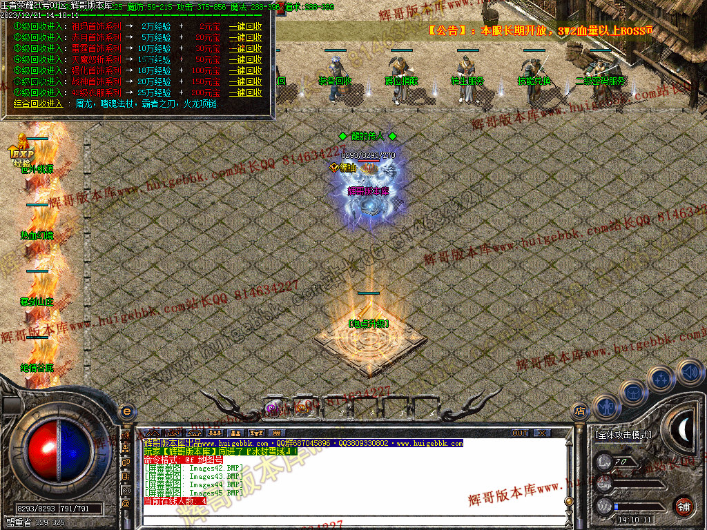 【版本介绍】:特色③:所有装备靠打.元宝装备保值.米回收.散人必选.骨灰赚钱!