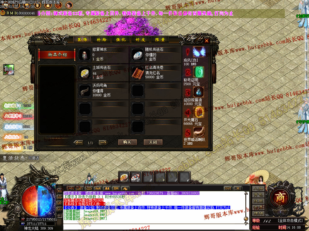 即日起购买本站版本qq 8129780 如果发现影响开区的大问题,可联系站长进行免费修复,