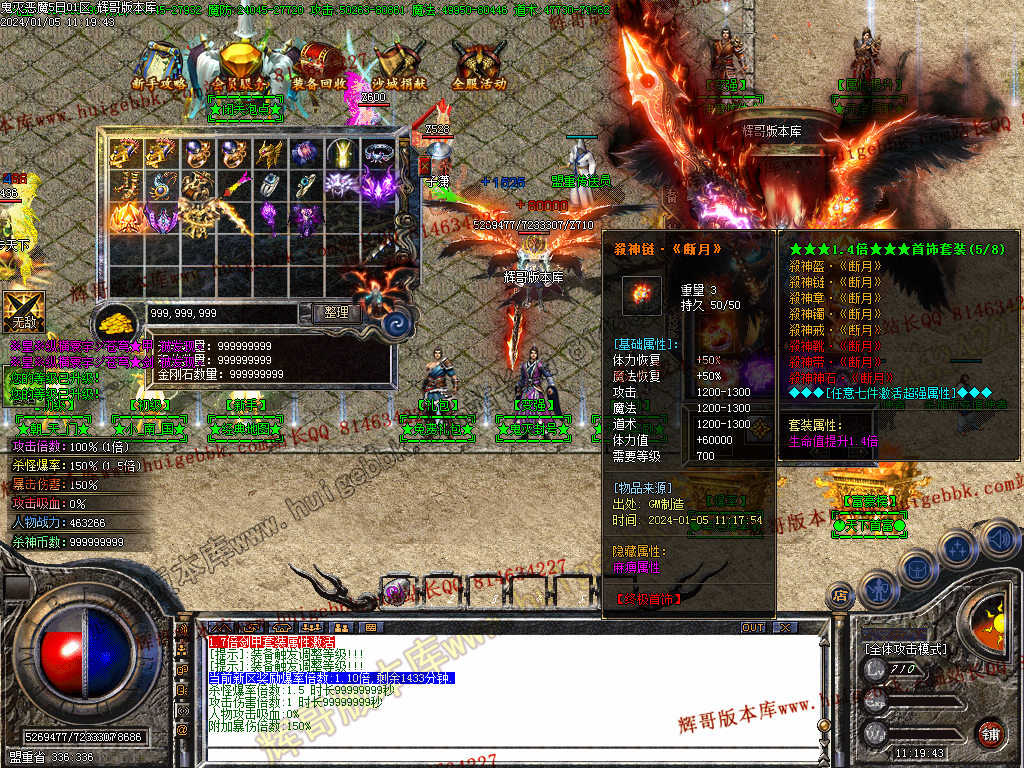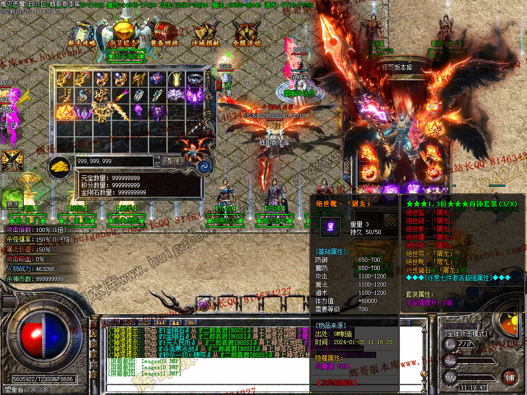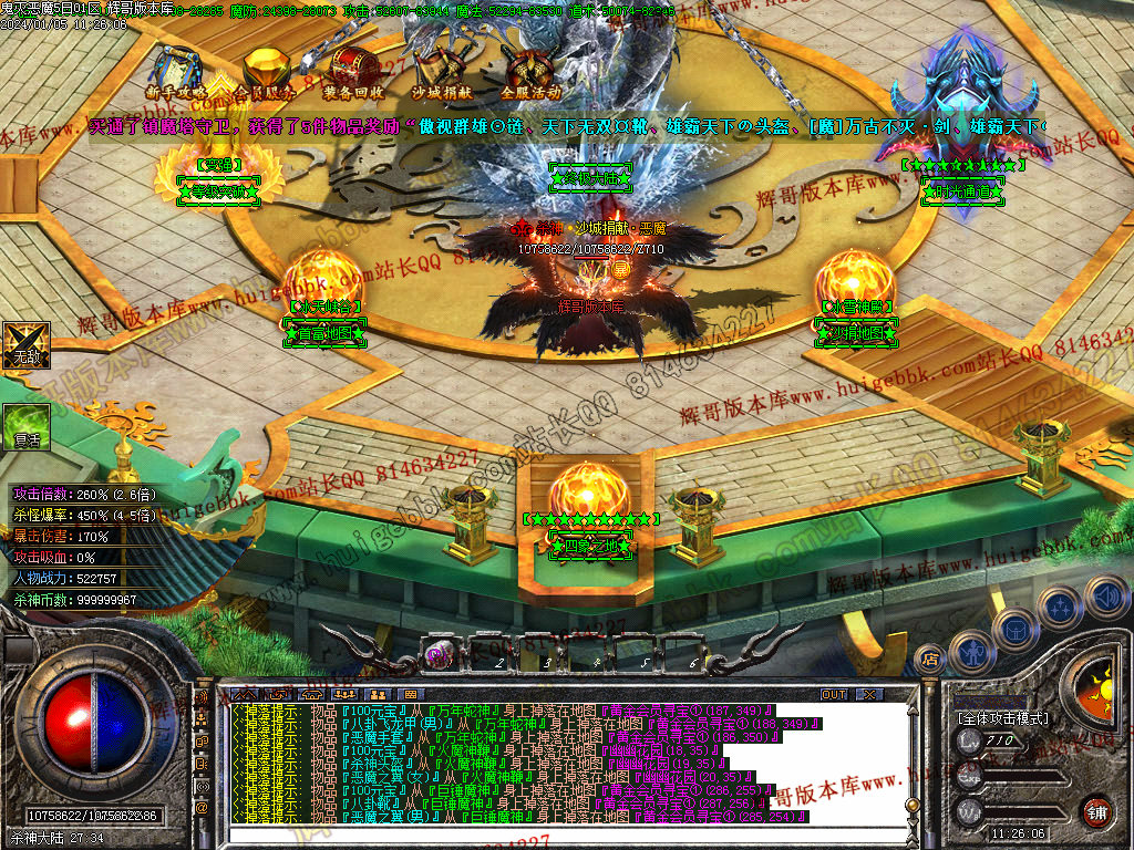 所有终极BOSS均爆全服所有装备(无双BOSS,洪荒BOSS,界主BOSS)!