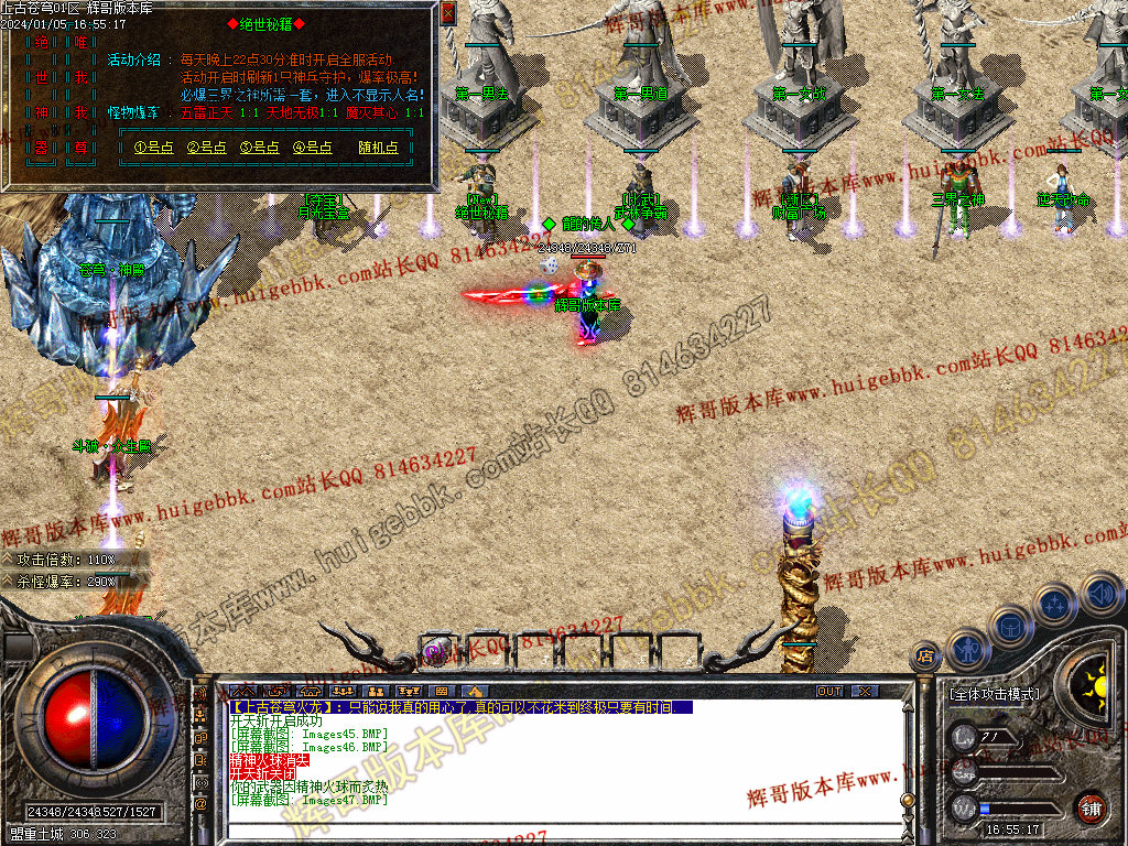 《土豪玩家]:做完以上这些,土豪玩家优先下士豪地图刷怪,多余的龙腾装备优先回收元宝, 士城上方回收: