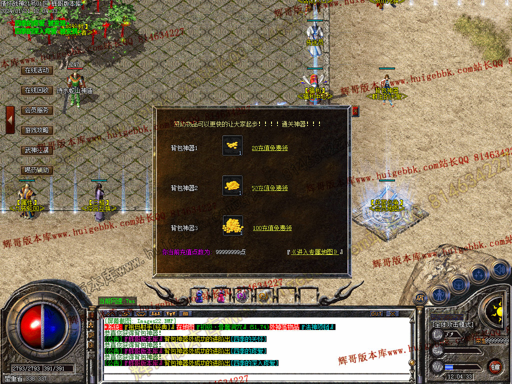 荣誉点:开启赞助(顶赞100),背包神器(顶级100),人物爆率(100元2倍、500元3倍、1000元4倍)