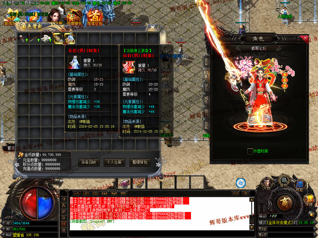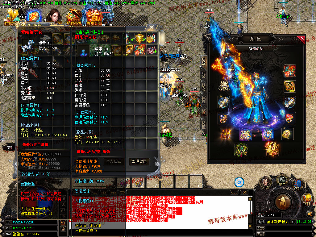 3、终极时装套装属性:附加15%永久爆率、攻魔道、血量、元素属性;