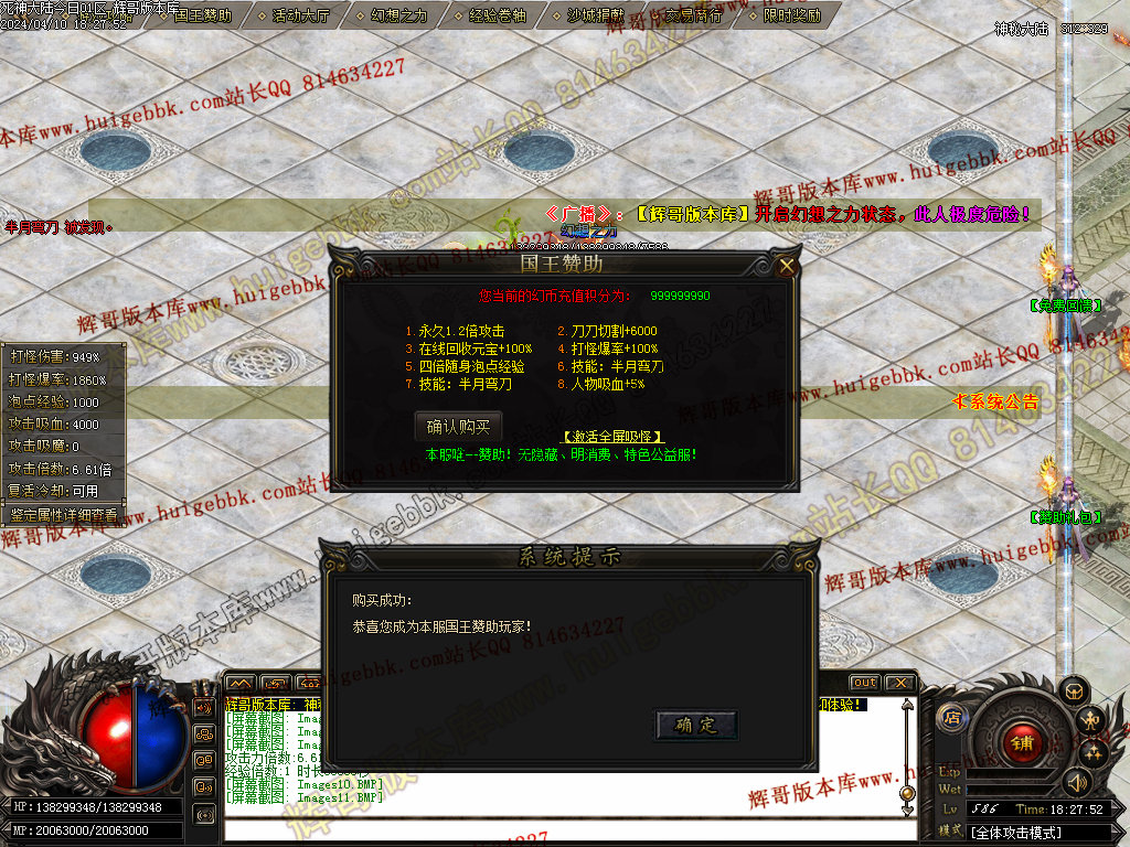 即日起购买本站版本qq 8129780 如果发现影响开区的大问题,可联系站长进行免费修复,