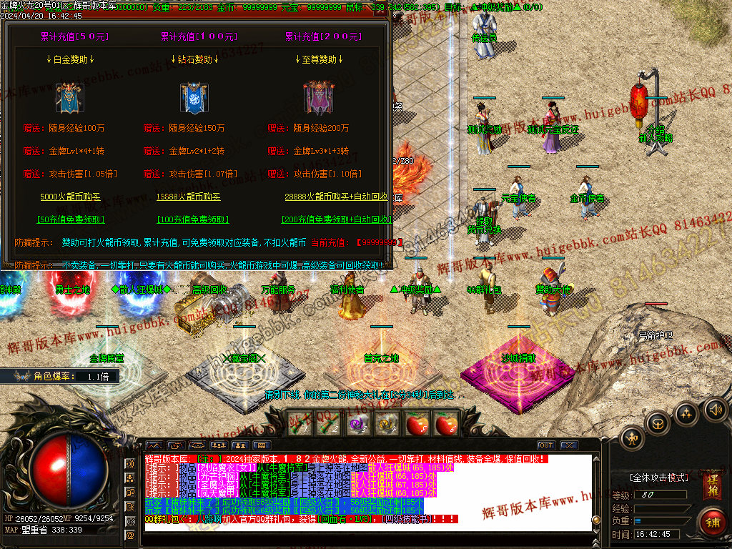 充100,开狂暴,元宝捐献,沙捐有自动捡物+自动挂机功能领取群礼包有守护宝宝泡65级,