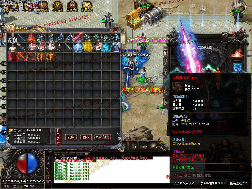 6.新增材料本命天书,幸运宝石,可在散人基地兑换神装~~
