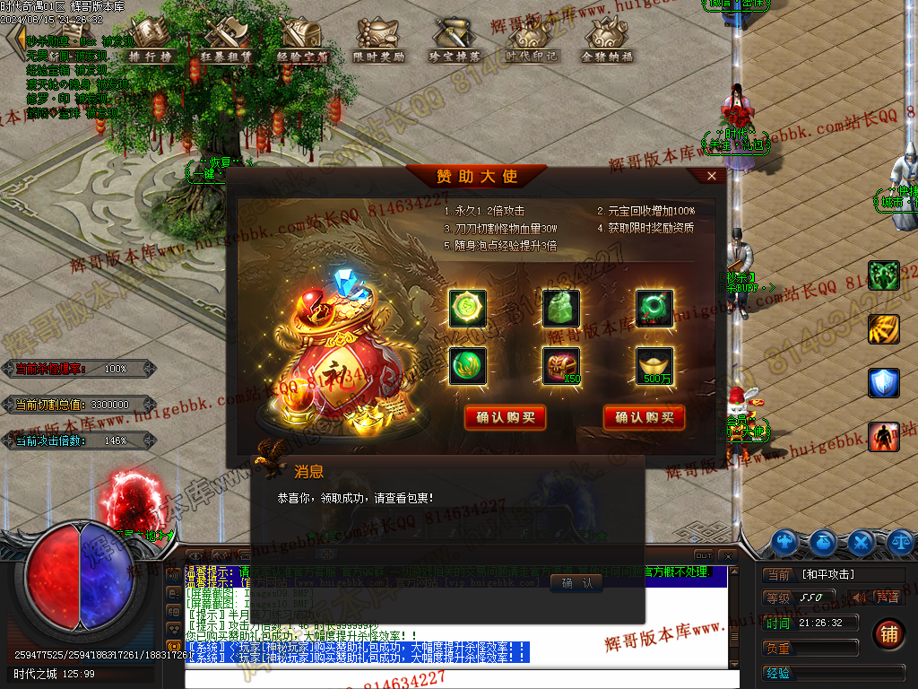 进游戏送刀刀冰冻刀刀切割10W,领取QQ群礼包,赞助一手30大米,狂暴40大米,即可无任何障碍打所有怪