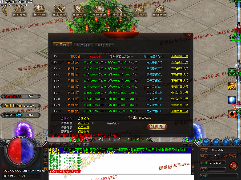 充值4420大米兑换3000大米购买赞助100手(送终极勋章。MAX),40大米开启狂暴+388大米斩杀礼包+满级时装+直升450级