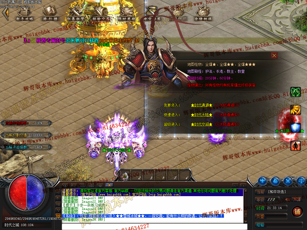 落地图需要450级(赞助101手+满时装+200帝王觉醒石即可进入 【黄、紫30分钟刷新 红、绿90分钟刷新】