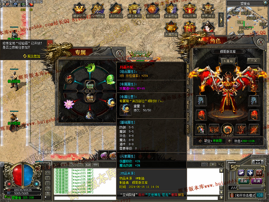 复古路线可以爆出各种(妖丹)以及(领主武器),异界路线可以爆出各种(收集箱内的专属),本服大部分功能都设置了双渠道,