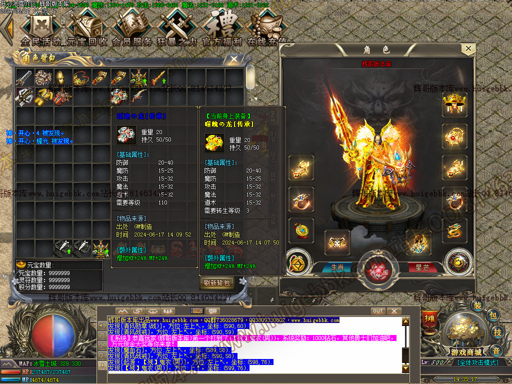 【游戏特色】:几百件回收件,BOSS高爆率。装备全靠打。一切只为公平。公平。还是TM的公平!