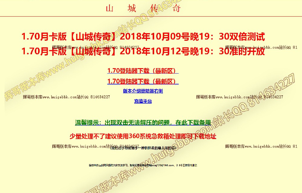 1.70月卡版【山城传奇】2018年10月12号晚19:30准时开放