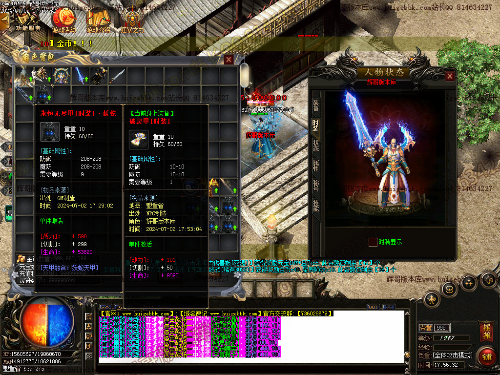 3.合成剑甲(本服只支持剑甲及时装合成,其他全部靠打!高级剑甲全部可以爆出)
