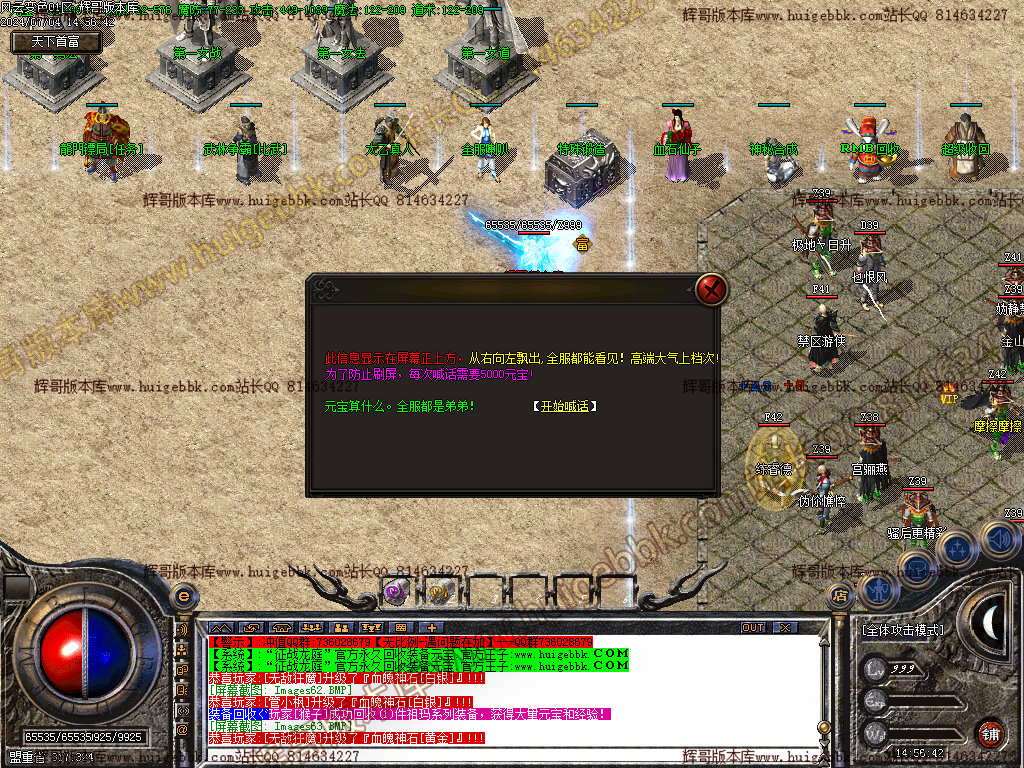 【公告】:为提高人物属性方便玩家打宝,特设置各种NPC,龙的传人,转生服务,爵位捐献,加官进爵,天下第一,武林盟主.世界