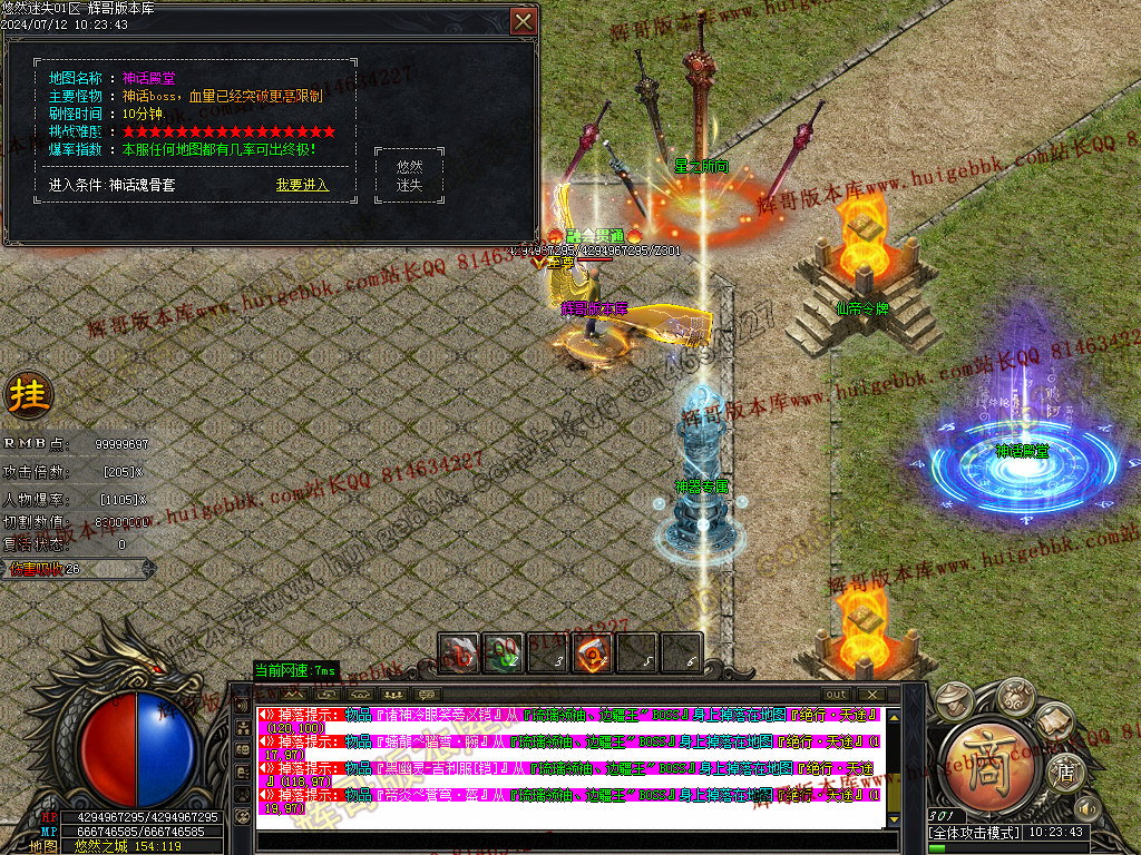 每个大陆安全区都会刷新全部超级boss..本服boss爆率为普通怪100倍