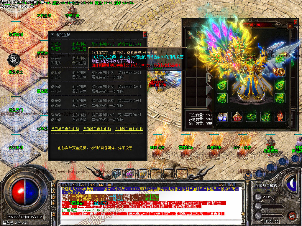 [特色玩法] 独创血脉体系,免费晋升,附带超强血技.首创神通体系,各种强大打怪增益.独创装备修为体系,高极品几率觉醒,狠强