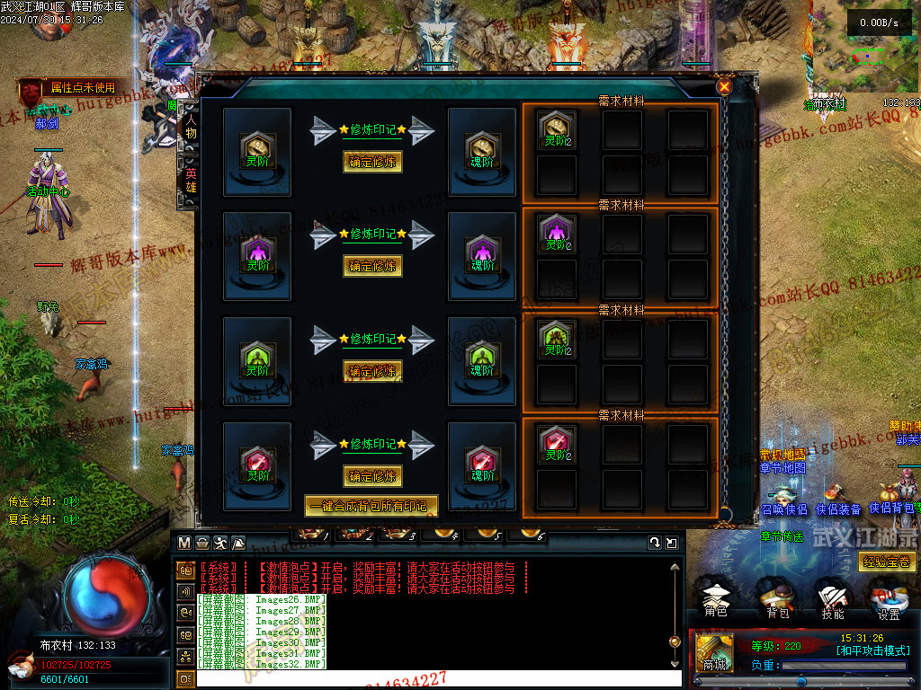 4)功法修炼:提升人物各属性,四本书各地图黄色以上怪就有爆。全部点满属性强大可以领称号。领称号在石岛综合榜单那领取。